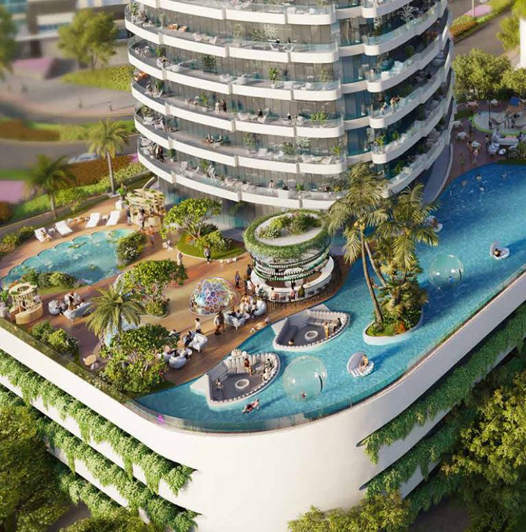 Chic Tower has redefined the very notion of luxury. And now, brace yourself, for a new gem has emerged on the Dubai Canal. Welcome to DAMAC Canal Heights, branded by de GRISOGONO, a luxurious waterfront living experience that embodies the beauty and perfection of nature’s most wondrous creation…. the blue pearl. DAMAC Canal Heights brings natural elements to life with a diverse range of amenities that promise year-round serenity and wellbeing. This stunning property encompasses a true gem of vibrant living, with one-of-a-kind multipurpose domes that serve as wellness cocoons, intimate dining experiences, and a perfect space for private parties and gatherings. Outstanding water features such as infinity lap and shell-shaped pools, as well as the essence of the blue pearl, create a timeless, flowing energy throughout the property, transforming it into a multifaceted lifestyle choice of home experience.
